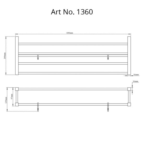 • Towel Rack with Rail & Hooks-Square